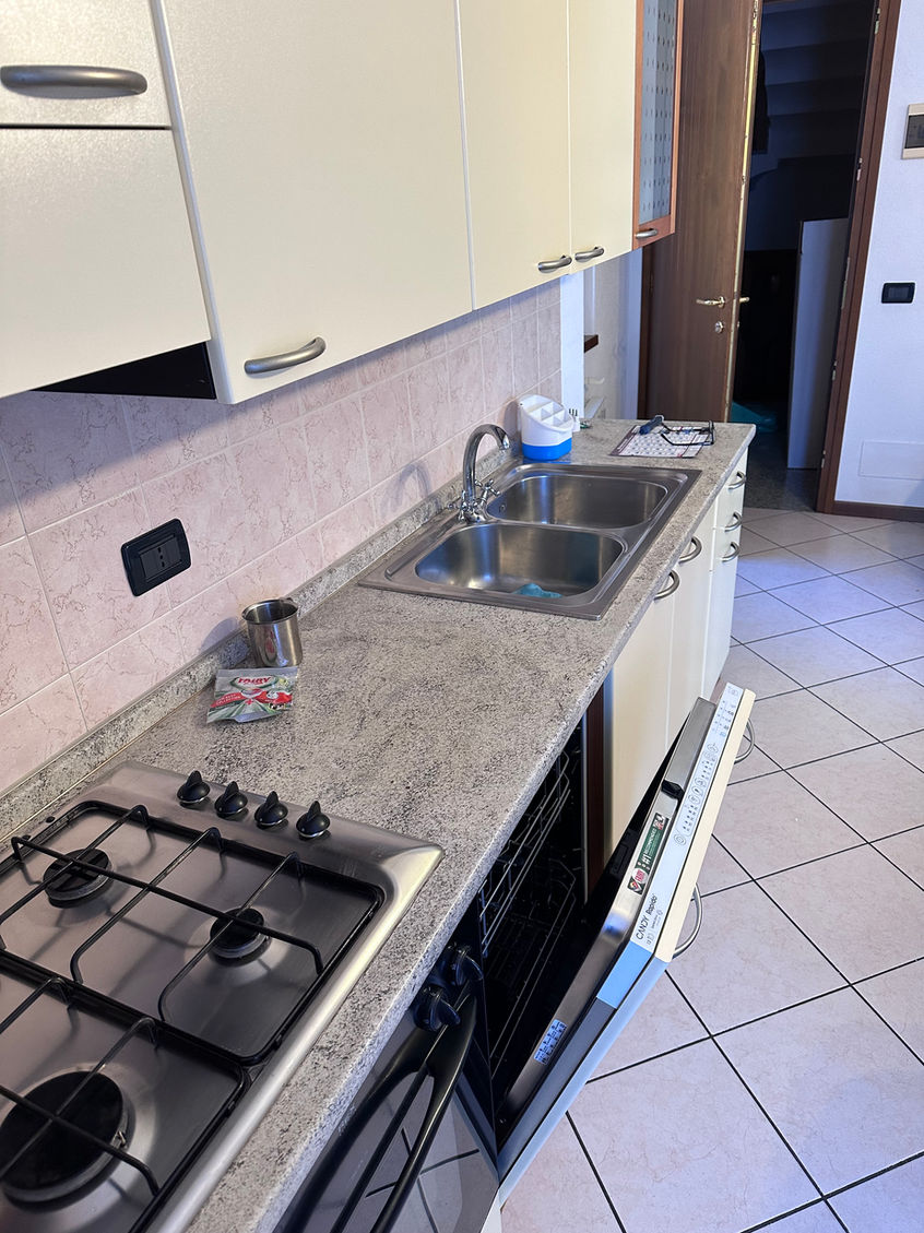 Cucina abitabile con divano letto matrimoniale con lavastoviglie piano cottura, forno, microonde